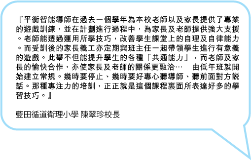 平衡智能™的教育理念是以遊戲培訓「共通能力」,從兒童學會齊齊合作玩遊戲開始,令兒童成為具發展力的社會人力資源。所謂「共通能力」就是企業所指的「管理能力」的基根,能掌握「共通能力」也就可以成為好的管理人材了。如何幫助那些剛剛進入小學的小一及小二兒童來起步學習「管理自己」呢?如何幫助他們有效地配合課堂活動設計來有效地學習「共通能力」呢?培訓兒童學會合作玩遊戲,就是一個最好不過的建議。